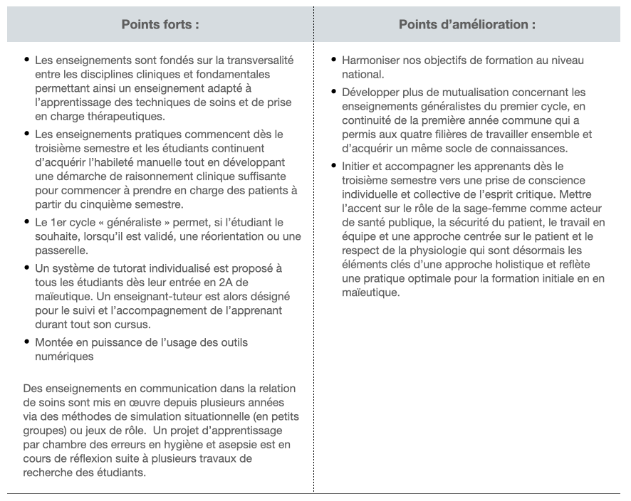 L’objectif principal de la formation du 1er cycle est l’acquisition d'un socle de connaissances scientifiques indispensables à la maîtrise ultérieure des savoirs et des savoir-faire nécessaires à l'exercice de la profession de sage-femme.